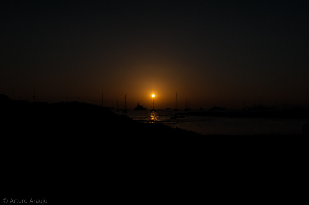 el cielo no huye y se pierde con el mar pero el horizonte se asoma discreto y esos disparos de la siluetas de los barcos crean un ambiente bien interesante
