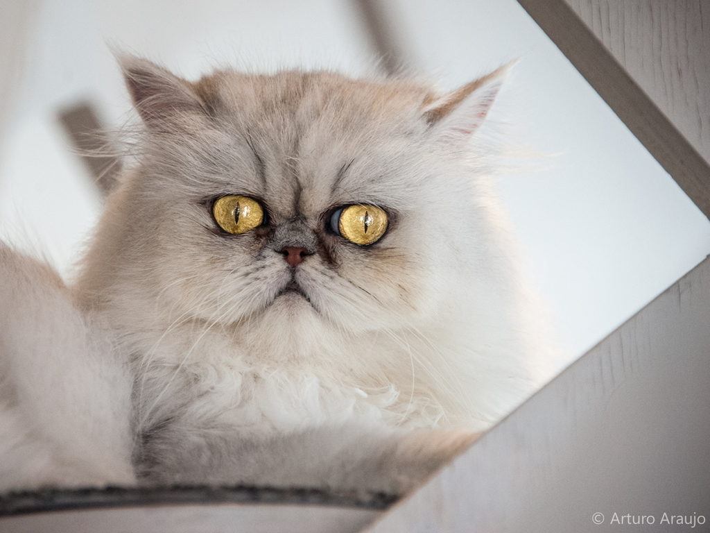 un rostro con tanta personalidad y unos ojos que parecen pistolas!! que interesante es la expresión de este minino